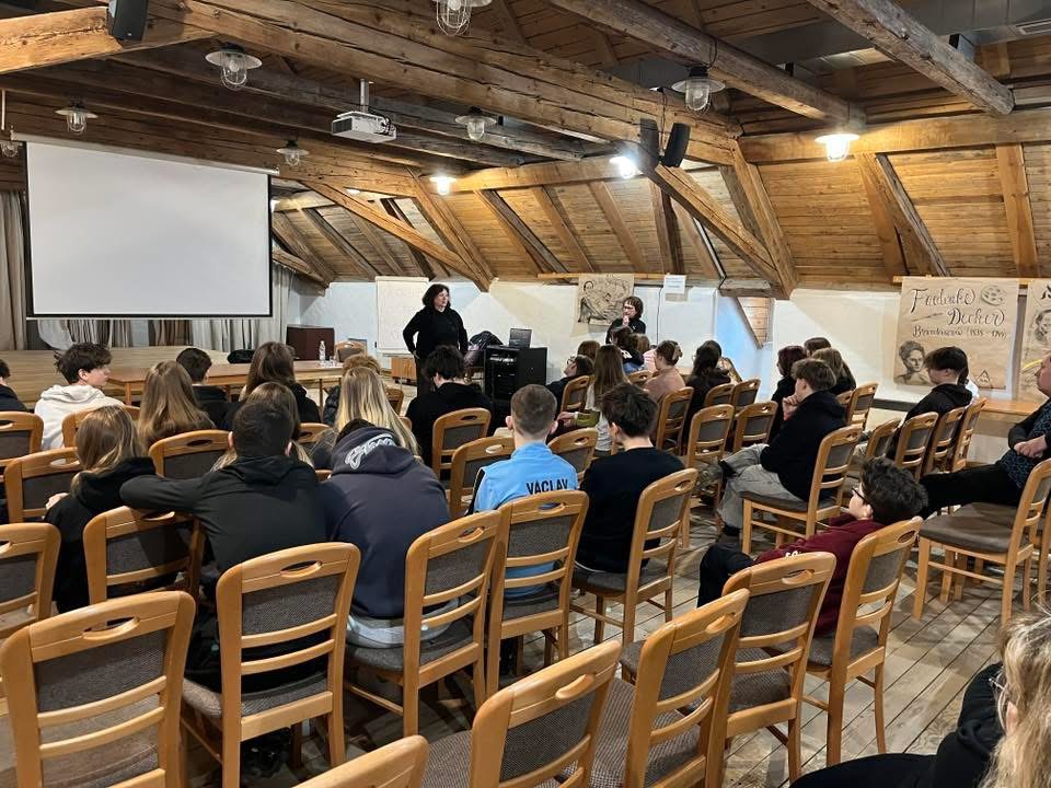V prostorách půdního divadla bývalých Magdeburských kasáren v Památníku Terezín se 20. ledna 2026 uskutečnila beseda žáků ze ZŠ Žulová a ZŠ Milovice s pamětnicí druhé generace přeživších holokaust, paní Alenou Lehovcovou. Její vyprávění nebylo jen historickou přednáškou – bylo osobním svědectvím o odvaze, traumatu, rodinných vazbách i o tom, jak hluboko může minulost zasahovat do dalších generací.